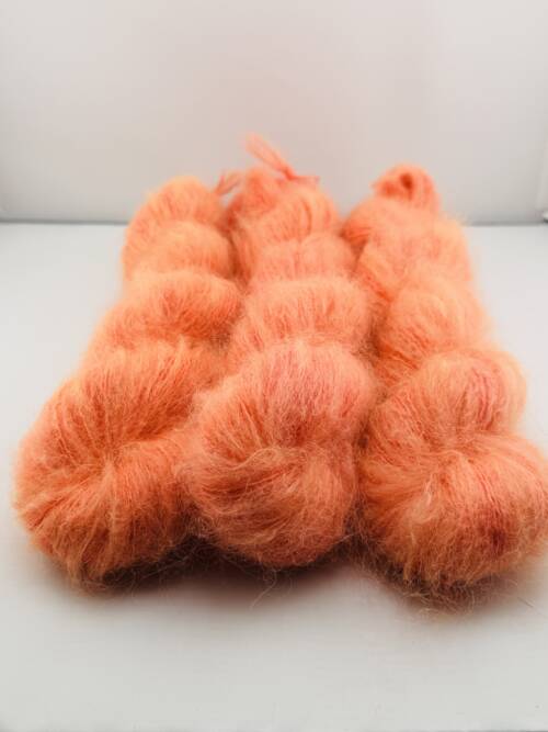 Dieses Garn ist wirklich ein Traum: 100% Kid Mohair, weich, flauschig und seidig. Ob mit größerer oder kleinerer Nadelstärke ergibt diese Wolle in der Verarbeitung ein einzigartiges Maschenbild. Kurz gesagt: es ist einfach eine wirklich wunderbare Wolle.