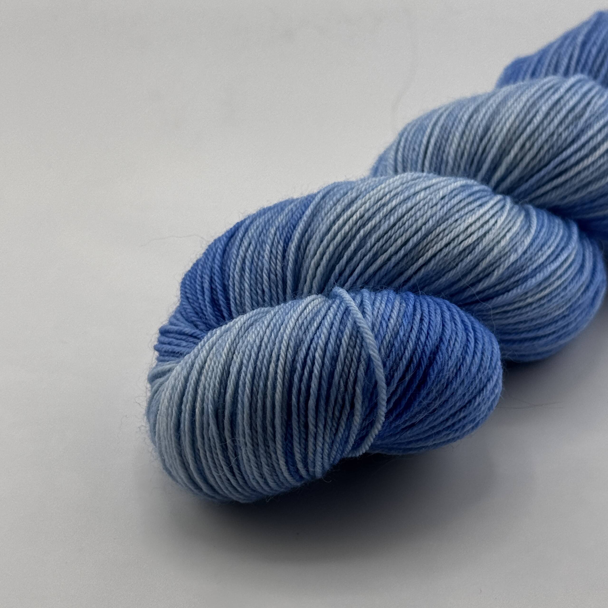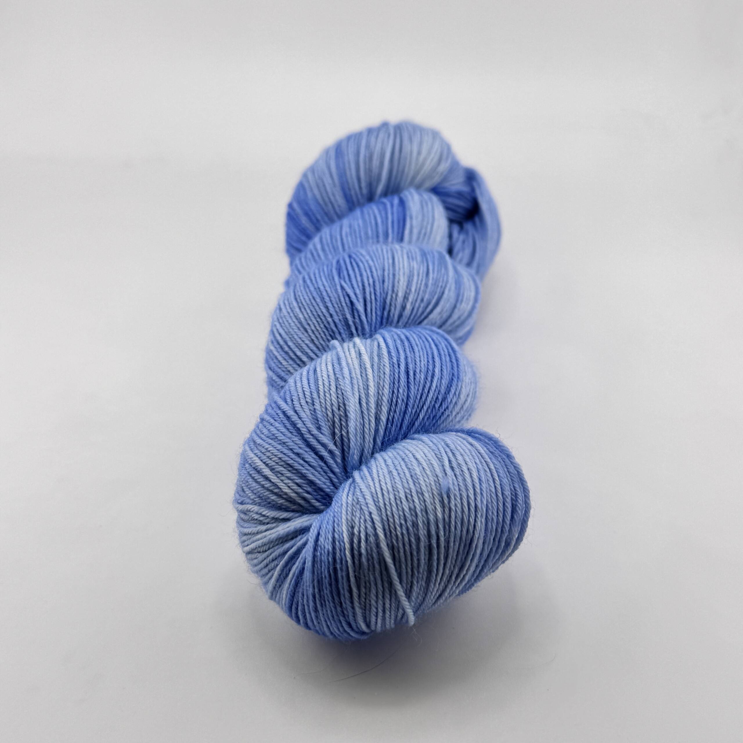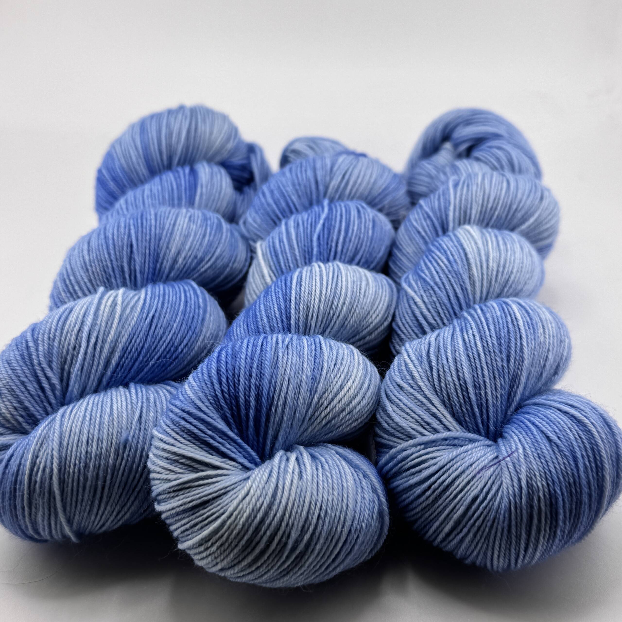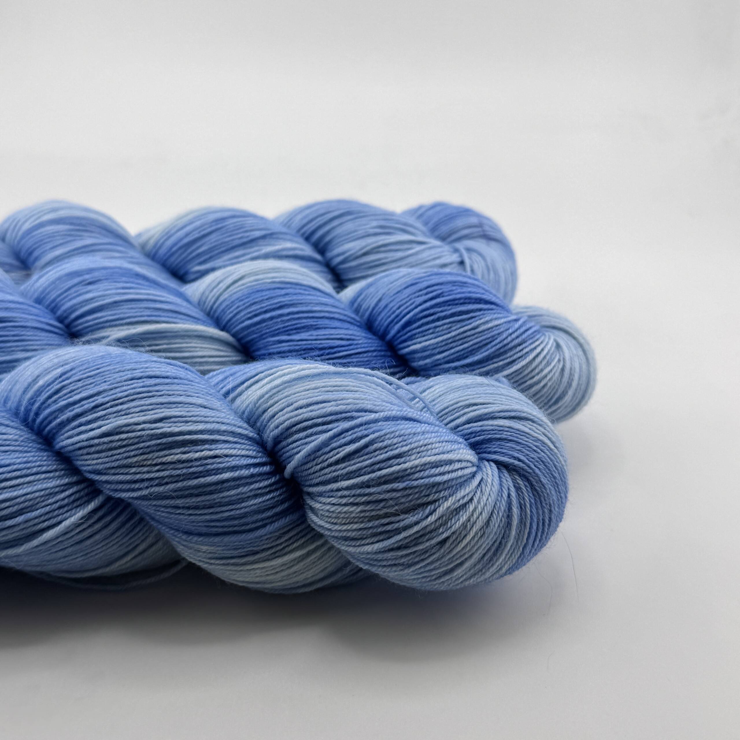 Handgefärbte Pure Merino Wolle in der Farbe Hellblau. Jeder Strang ist ein Unikat.