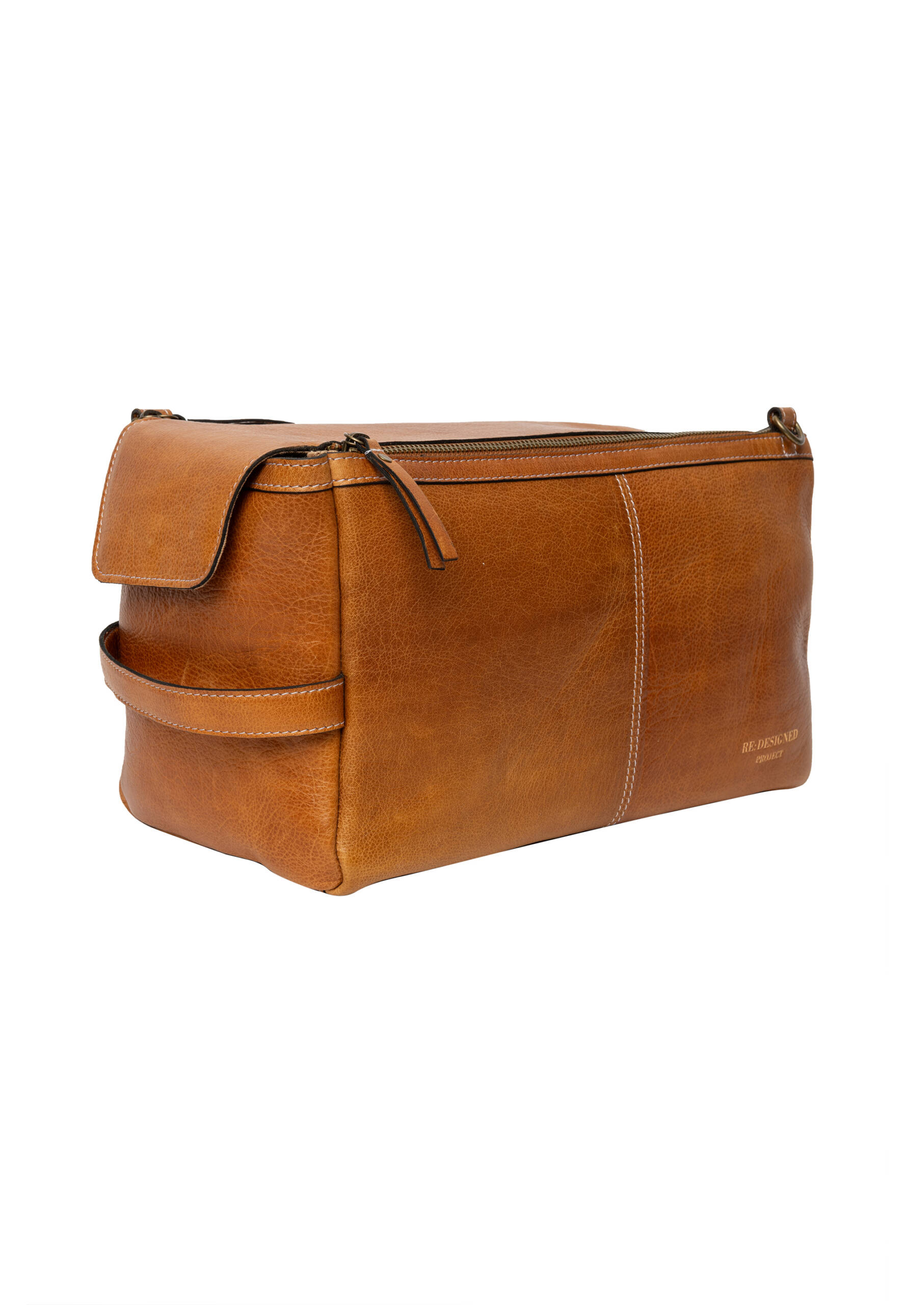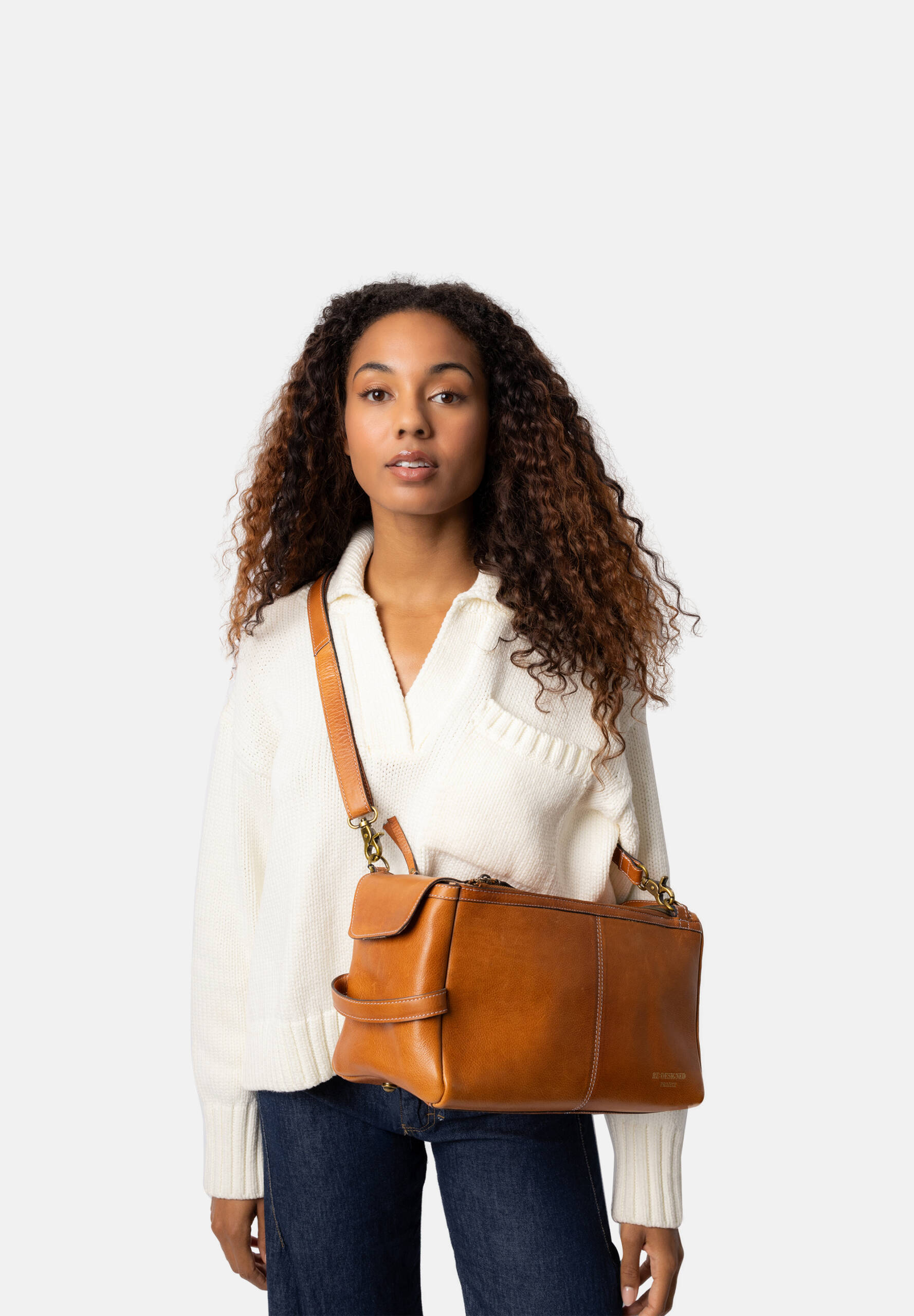 RE:DESIGNED Project 44 Tasche – handgefertigte Stricktasche aus Leder mit Fächern für Rundstricknadeln und Strickzubehör in Urban-Lederqualität in der Farbe Burned Tan.