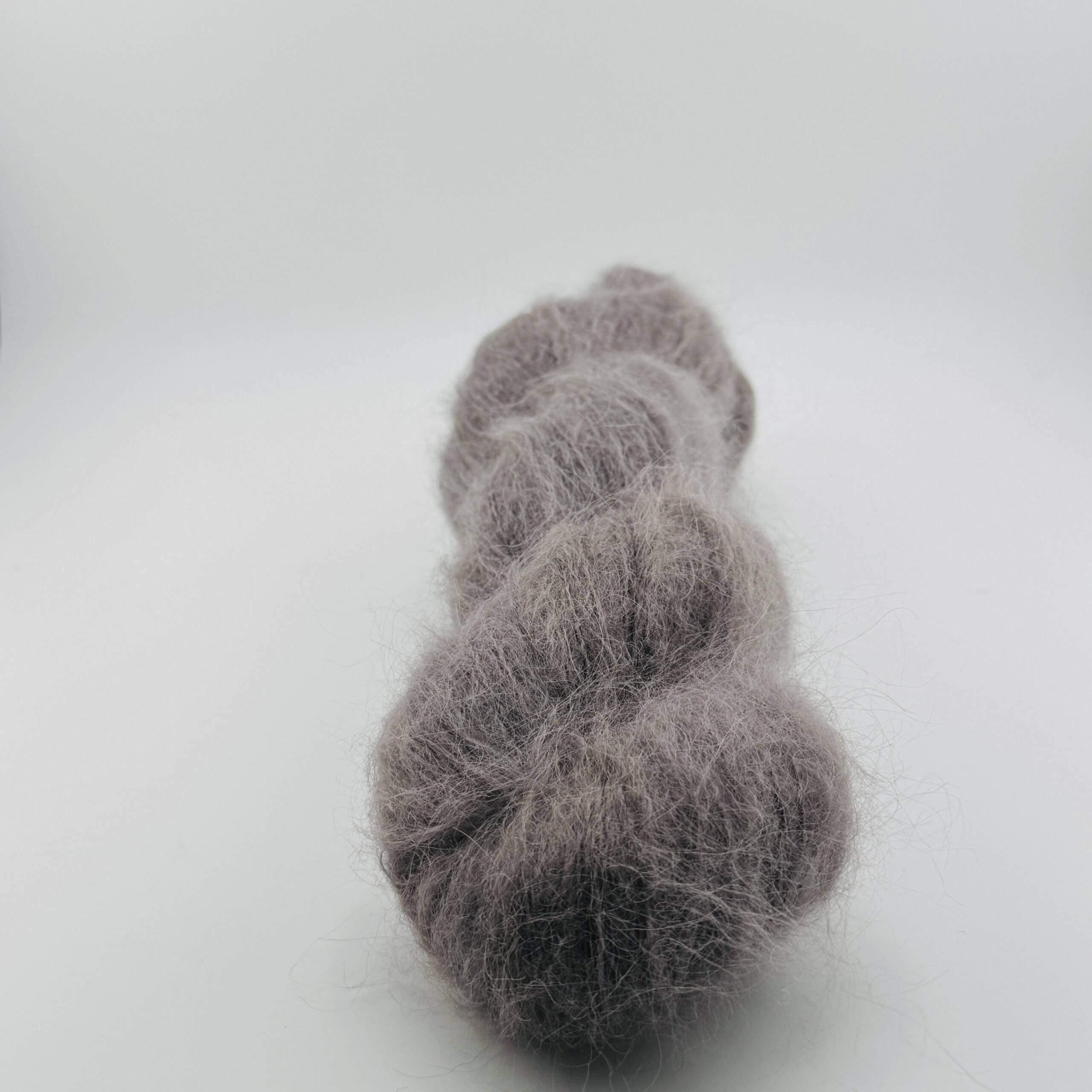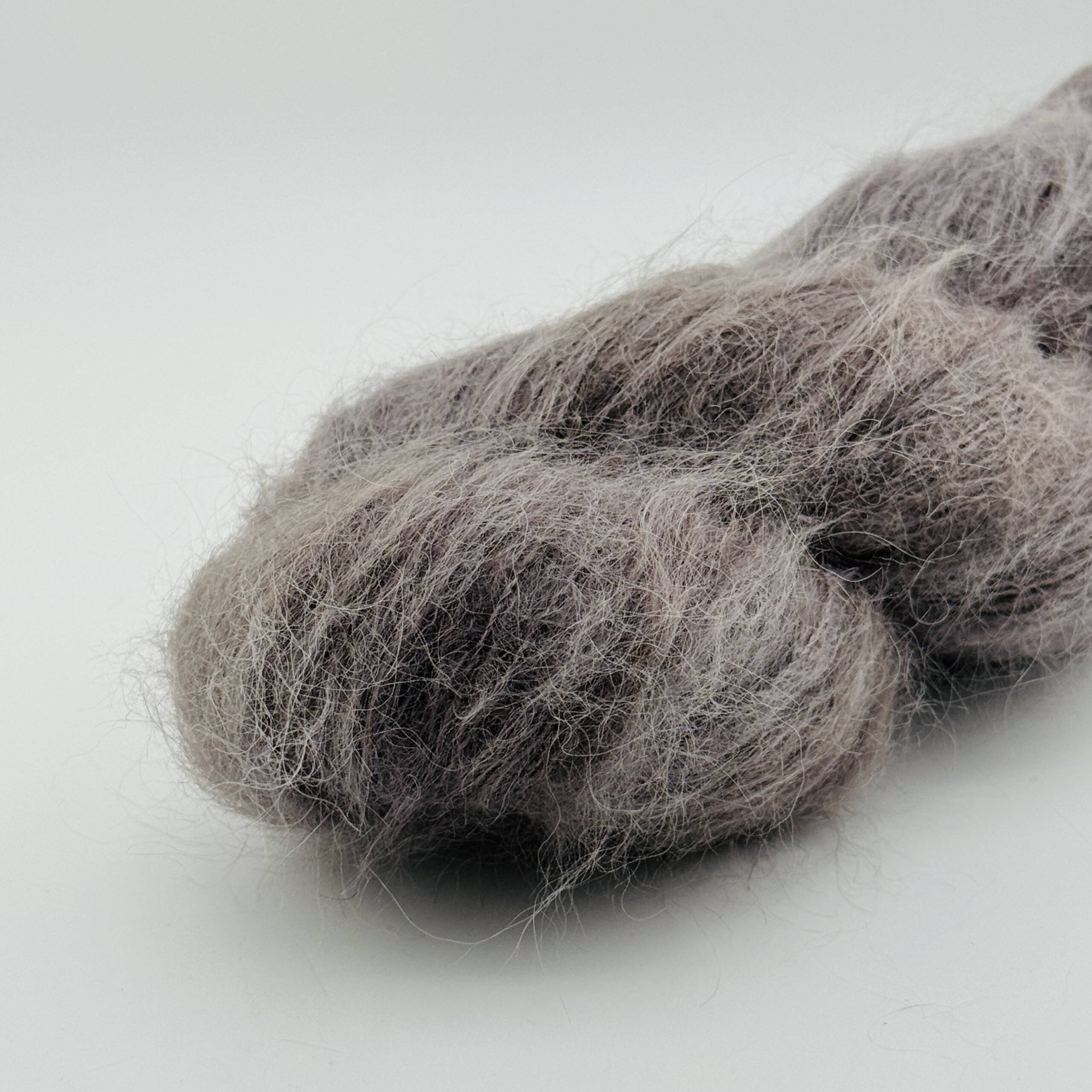 Handgefärbte Suri Alpaca Wolle in der Farbe Dunkelgrau. Jeder Strang ist ein Unikat.